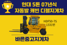 중고지게차 현대 5톤 07년식 자동발 캐빈 디젤지게차 싸게 팝니다.