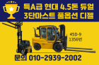 중고지게차 매매 특A급 현대 4.5톤 듀얼 3단마스트 풀옵션 디젤지게차 2900만원 싸게 팝니다.