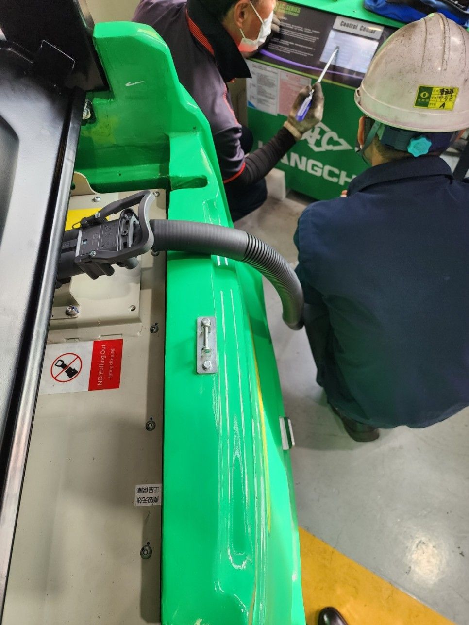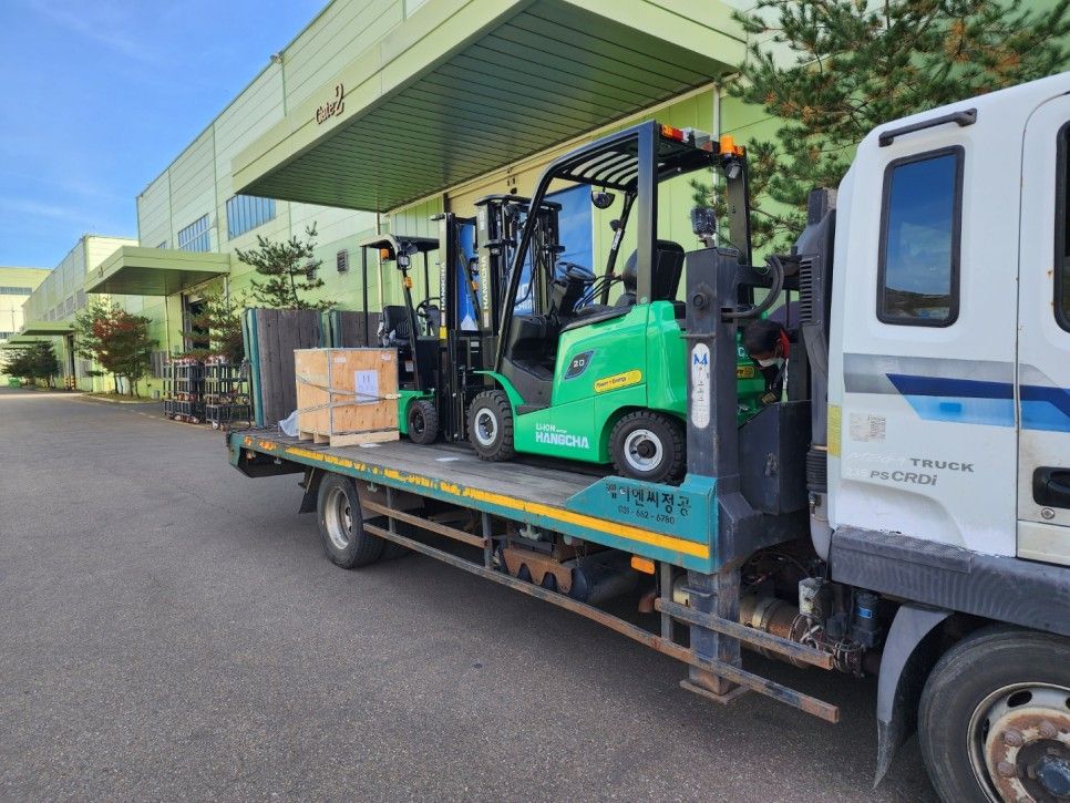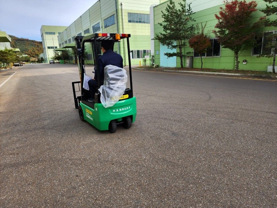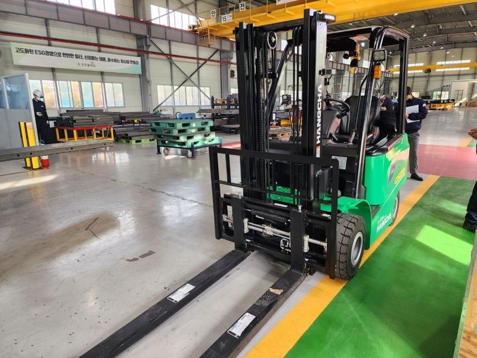 충북 보은에 규모가 굉장히 큰 기업에 납품을 했는데 항차 브랜드의 전동지게차 2대를 납품하였습니다