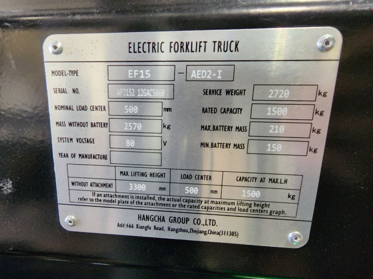 1.5톤 좌승식 리튬지게차로 2단 마스트 스텐다드, 사이드쉬프트 장착모델로