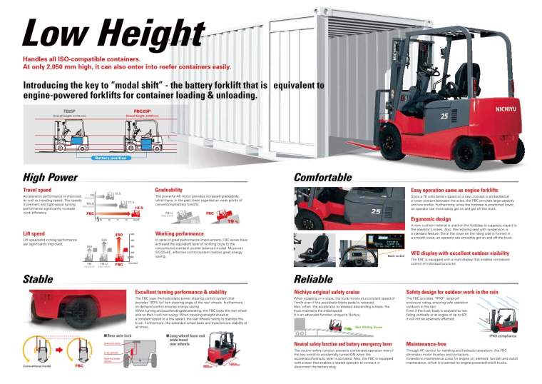 ISO기준을 만족하는 컨테이너 작업이 가능하며, 전고 2,050mm 이하의 컨테이너의 내부에서도 안심하고 작업할 수 있습니다.