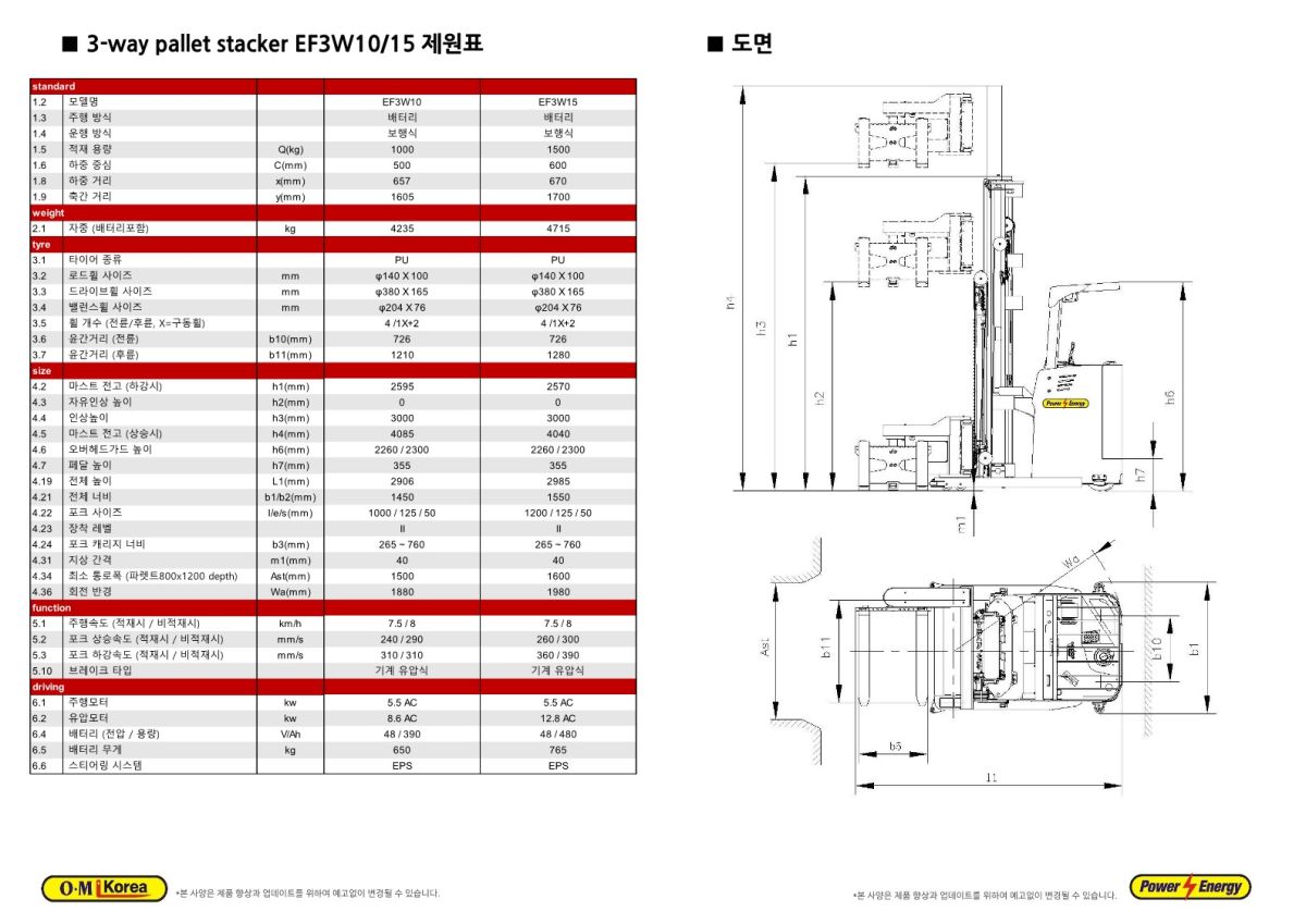 삼방향지게차 리튬배터리 1톤 맨다운 EF3W10