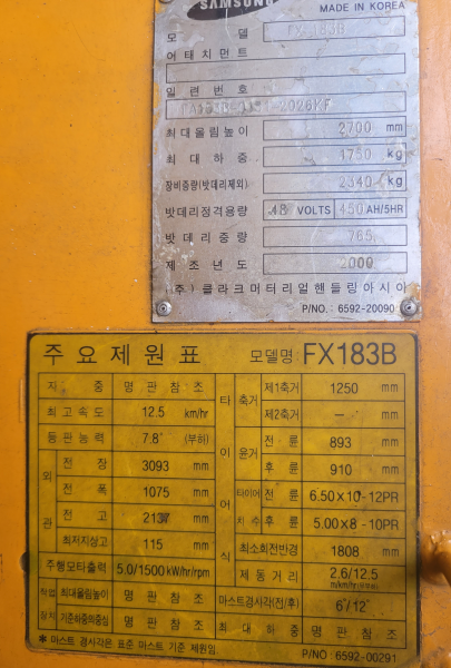 특이( 옵션 )사항 : 2단마스트, 배터리 상급
