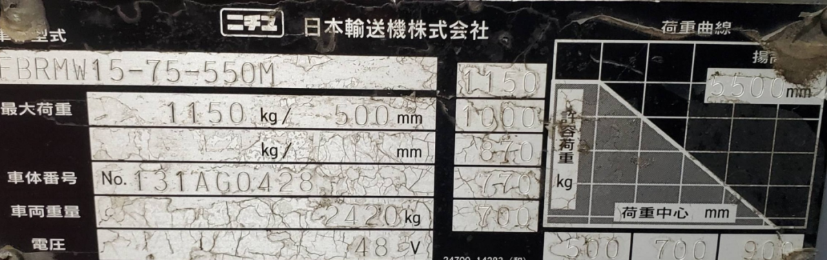 니찌유 입식 전동지게차 1.5톤 3단마스트