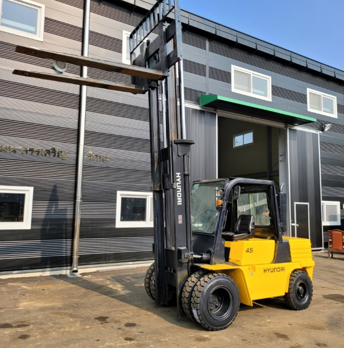 장비명 :  현대 HR 디젤 4.5톤 2단 하이마스트(3,800mm) 더블타이어 지게차