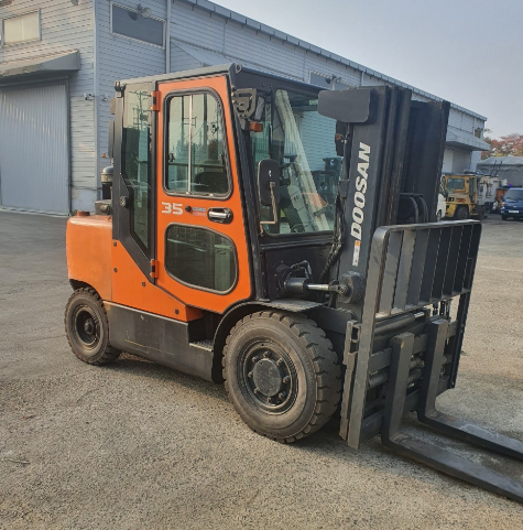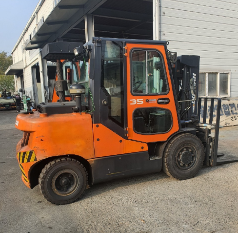 장비명 :  두산 D35S-7 디젤 3.5톤 3단마스트(4,000mm) 자동발 사이드쉬프트 풀캐빈 지게차