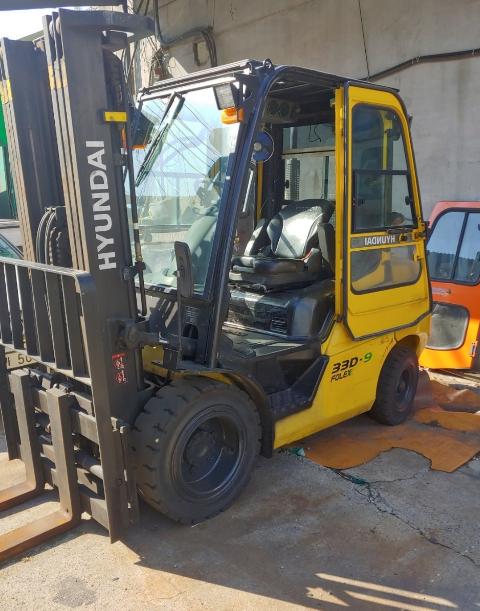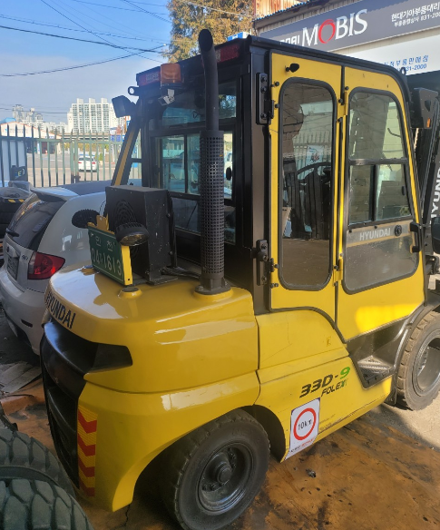 장비명 :  현대 33D-9 디젤 3.3톤 3단마스트 자동발 풀캐빈 통타이어 지게차