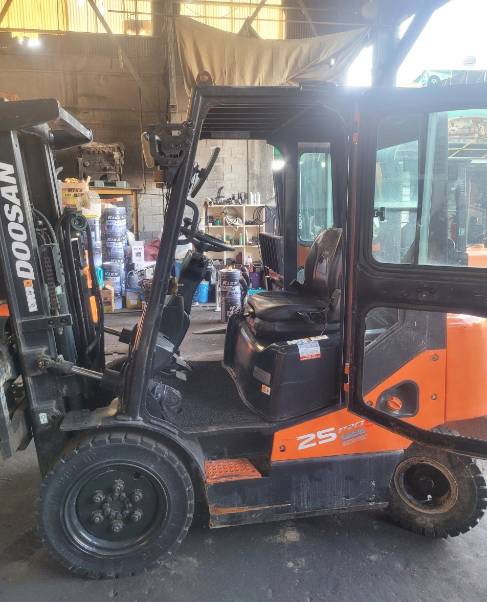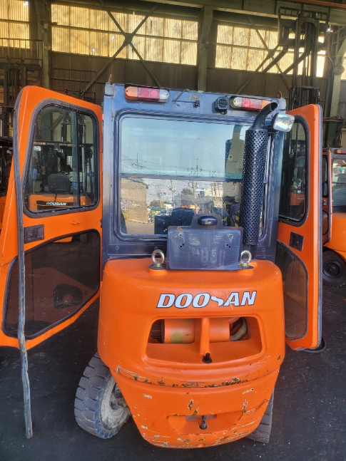 장비명 :  두산 디젤 2.5톤 뿔뿔이 2단마스트  자동발(양개식) 3스풀 지게차