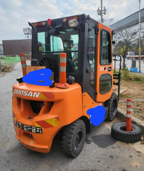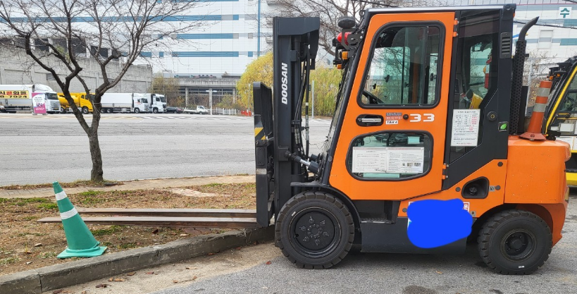 장비명 :  두산 D33 디젤 3.3톤 3단마스트 봉타입 자동발 풀옵션 지게차