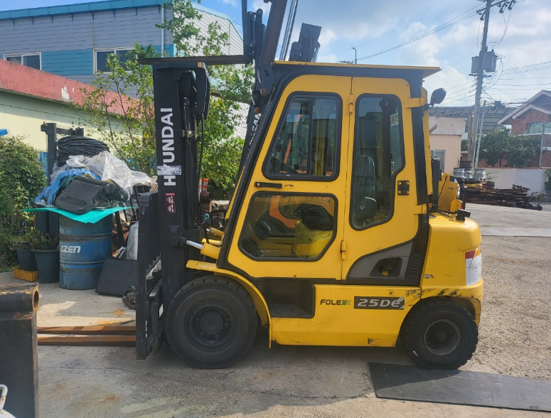 현대 25DE 디젤 2.5톤 2단마스트 사이드쉬프트 풀캐빈 에어컨 지게차